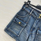 Celine Arc de Triomphe Metal Buckle Denim Shorts Blue Cotton