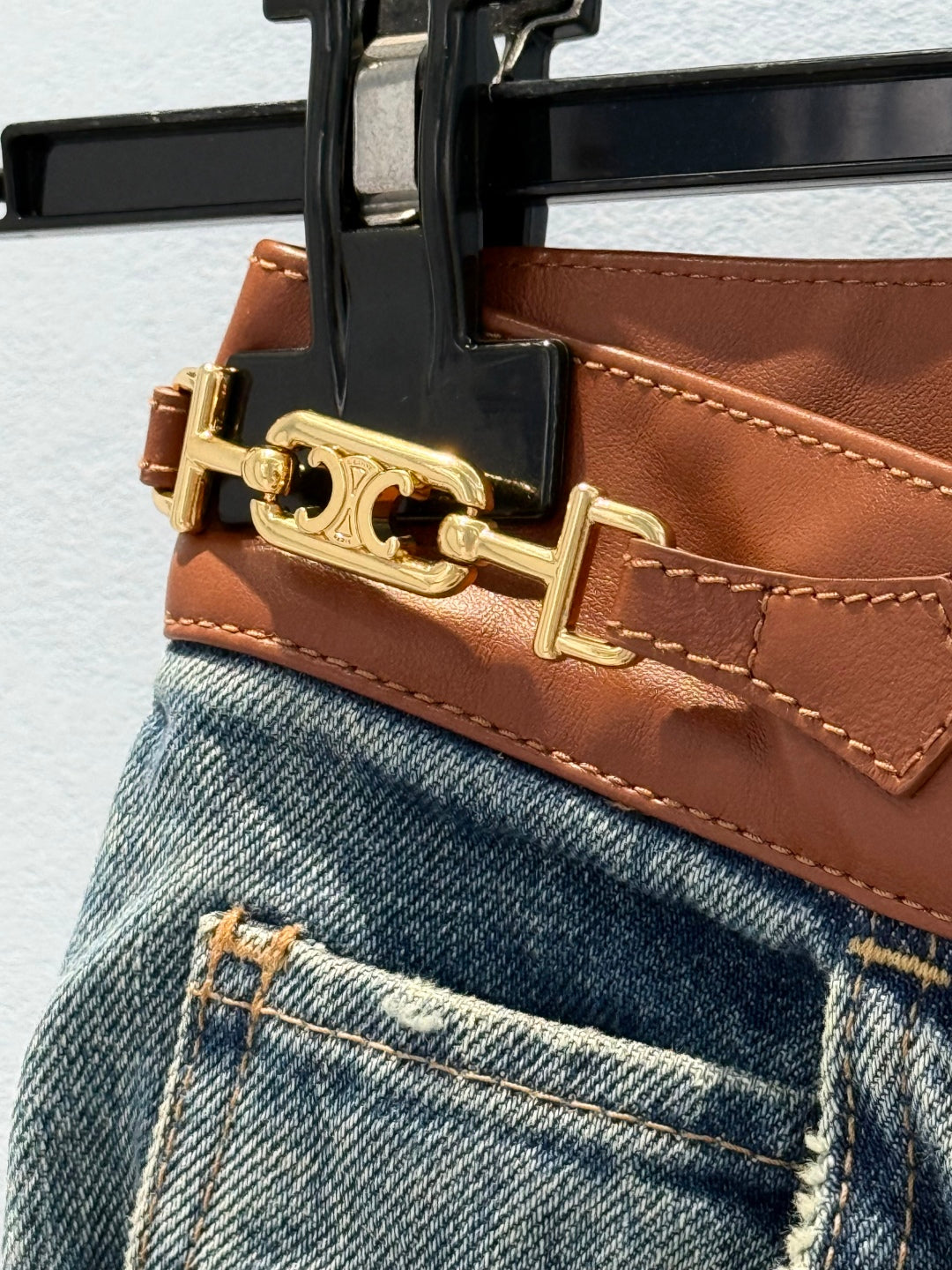 Celine Denim Jeans with Belt Blue mix Brown Cotton