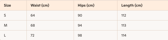 - For more information, please see the size guide below