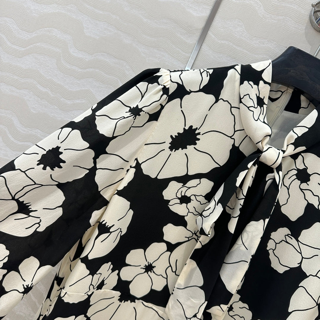 Celine Flower Dress Black mix White Silk