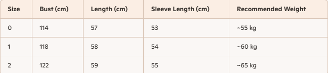 - For more information, please see the size guide below