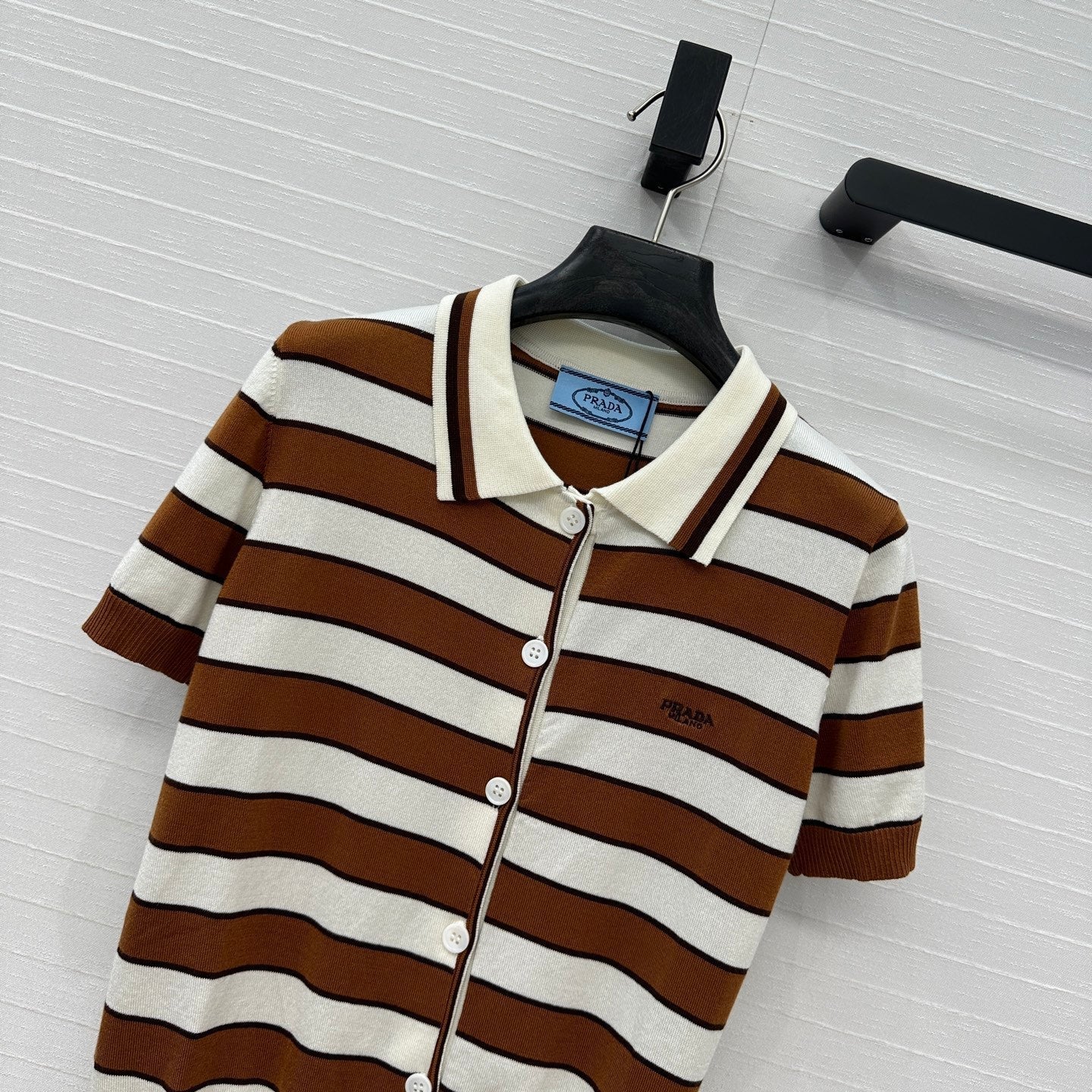 Prada 25 Striped Short-sleeved Knitted Cardigan Brown white Cotton