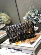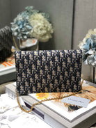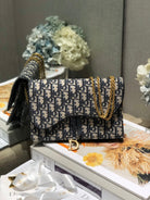 CD Saddle Pouch With Chain Blue Obique Embroidery