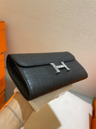 HM CLUTCH CONSTANCE 20.5 BLACK CROCODILE SKIN
