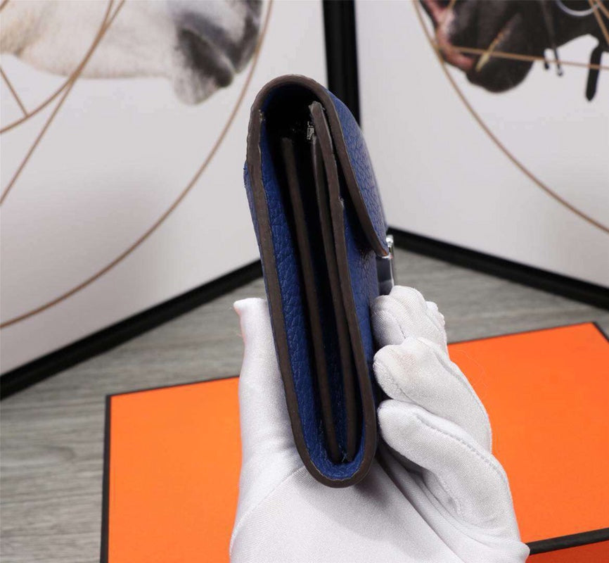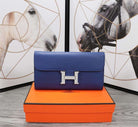 HM CLUTCH CONSTANCE 20.5 COBALT CALFSKIN SILVER HARDWARE