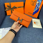 HM CLUTCH CONSTANCE 22 ORANGE CALFSKIN SILVER HARDWARE