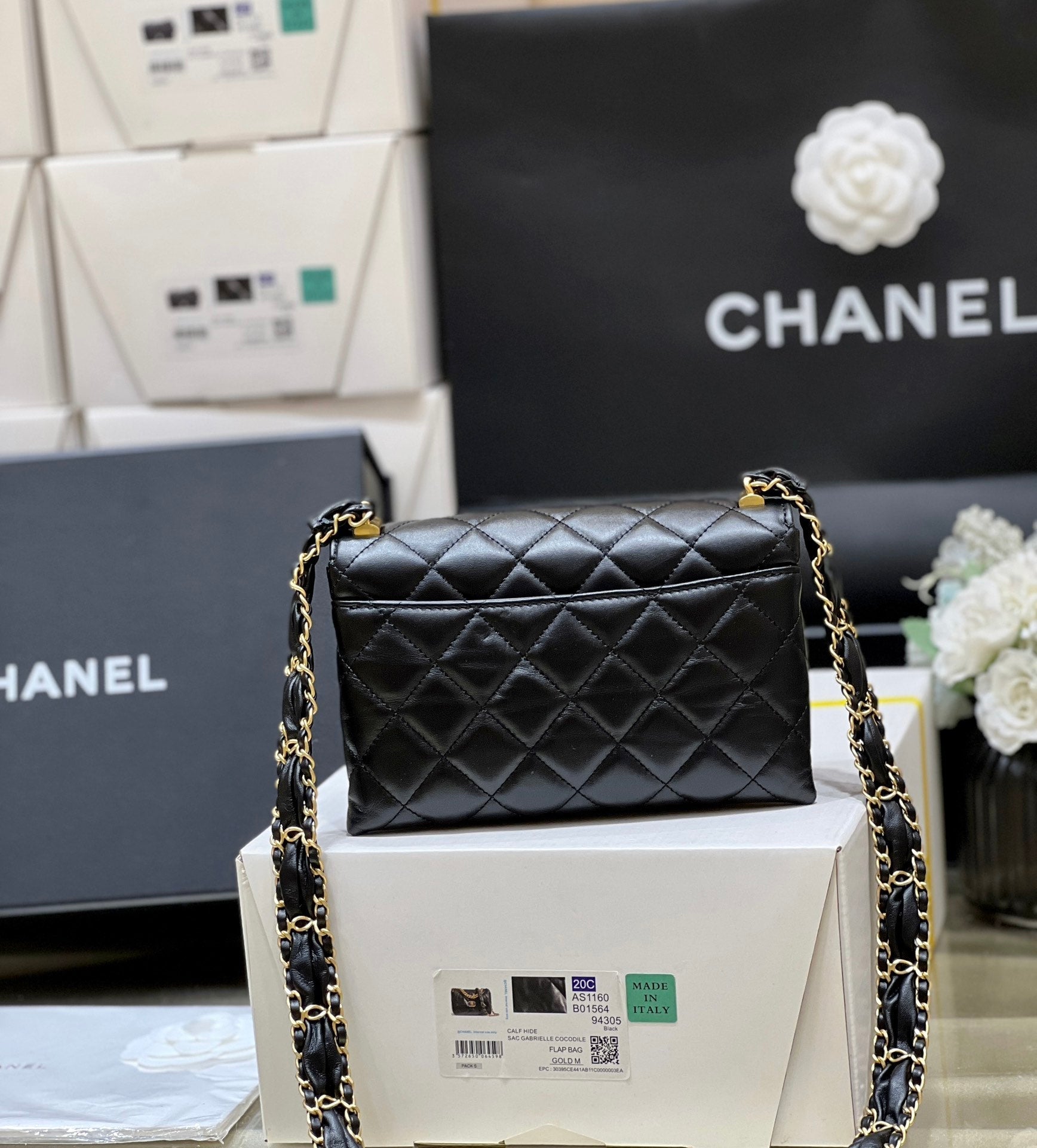 19 FLAP BAG 18 BLACK BODIN CALFSKIN GOLD HARDWARE
