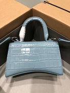 Balenciaga Hourglass bag light blue crocodile skin