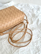 • Mini intrecciato leather crossbody bag with knotted metallic embellishment