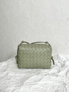 • Small intrecciato leather crossbody bag with knotted metallic embellishment