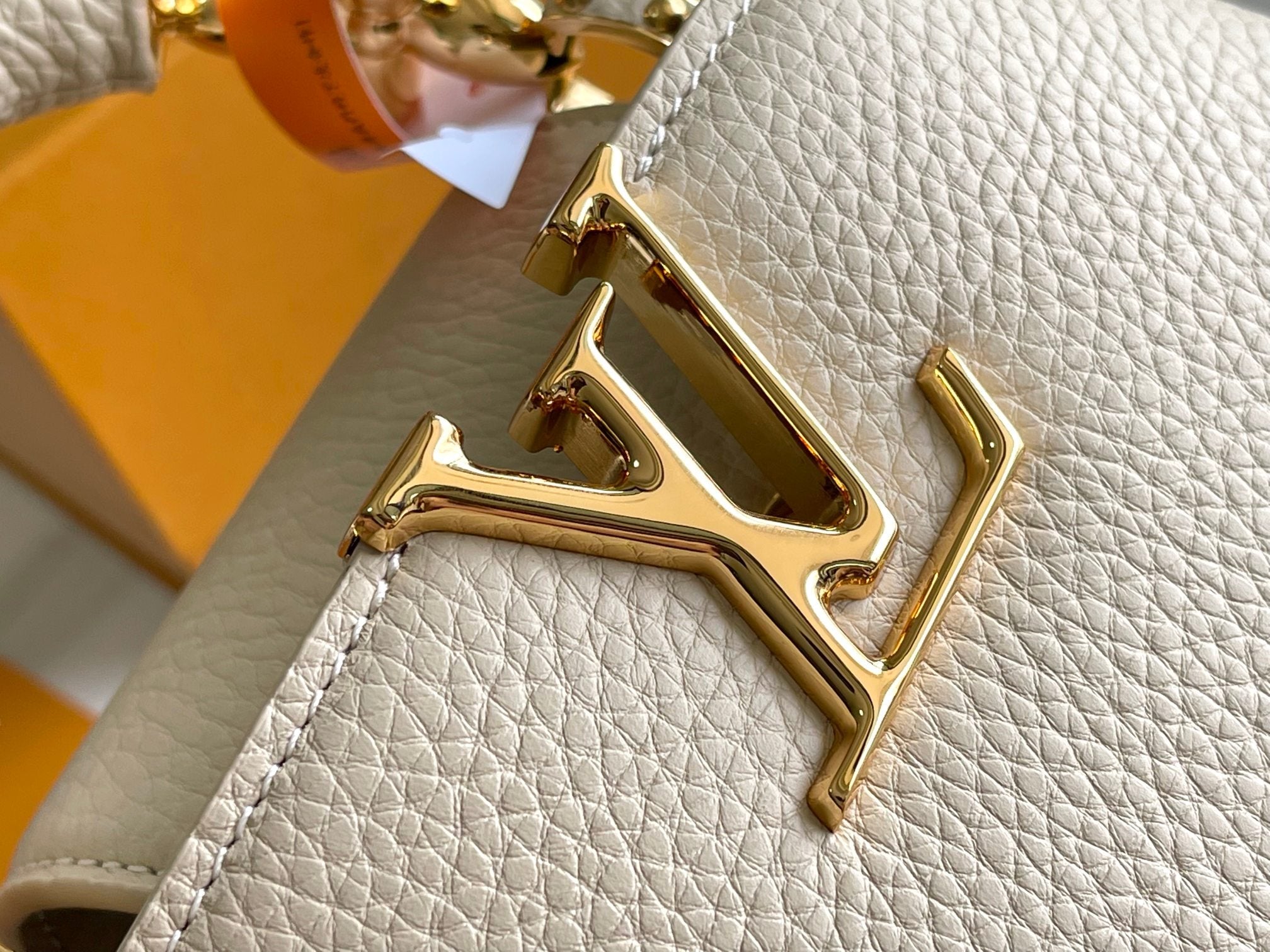 CAPUCINES BB 27 BEIGE TAURILLON GOLD HARDWARE