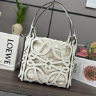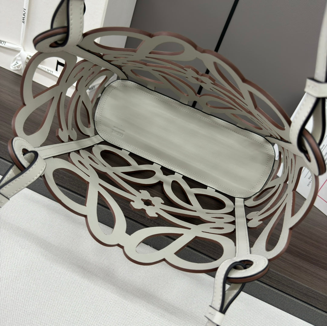 LOE 32 ANAGRAM CUT-OUT CROSSBODY IN WHITE CLASSIC CALFSKIN AND CANVAS