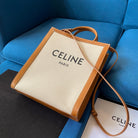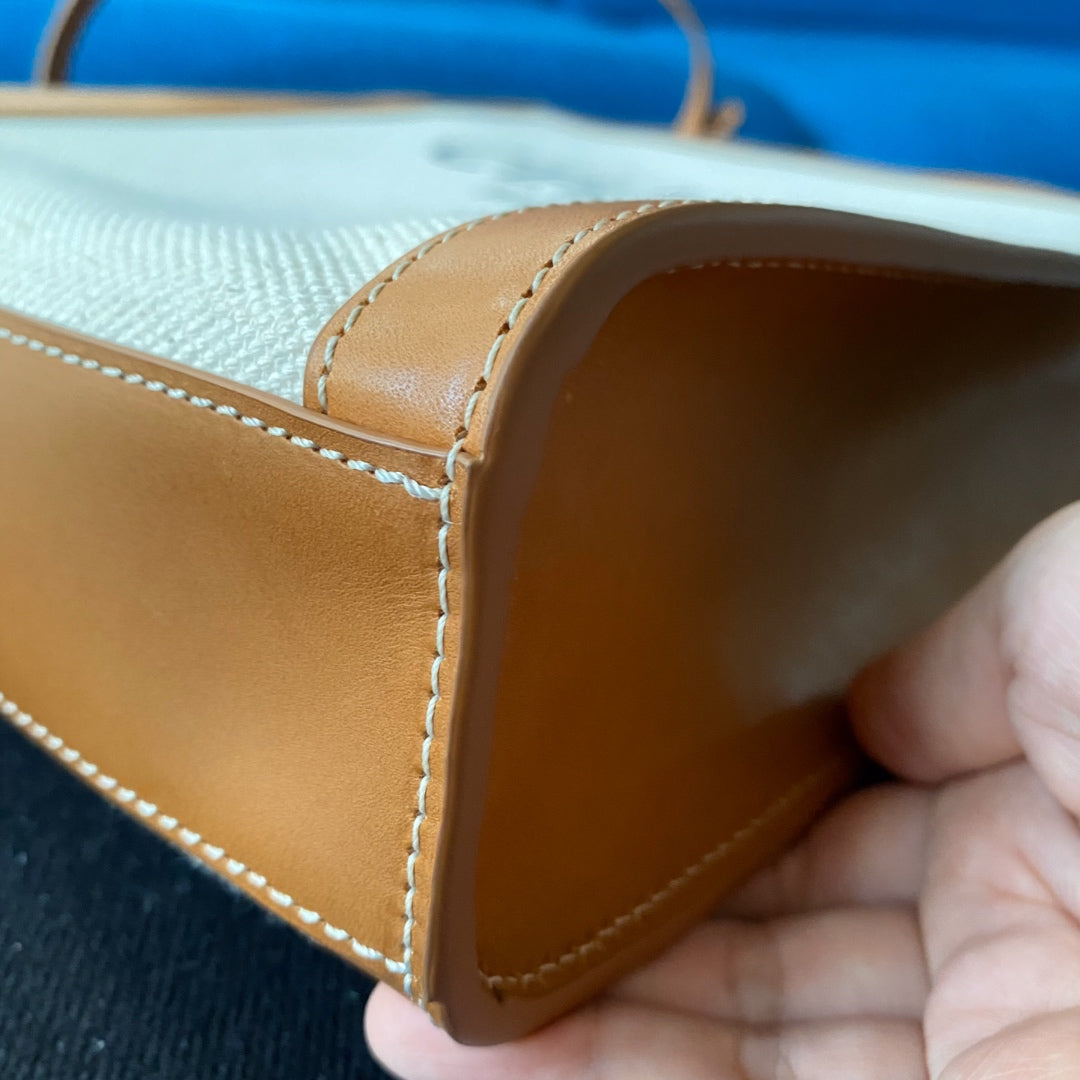 small vertical cabas 28cm beige canvas tan calfskin