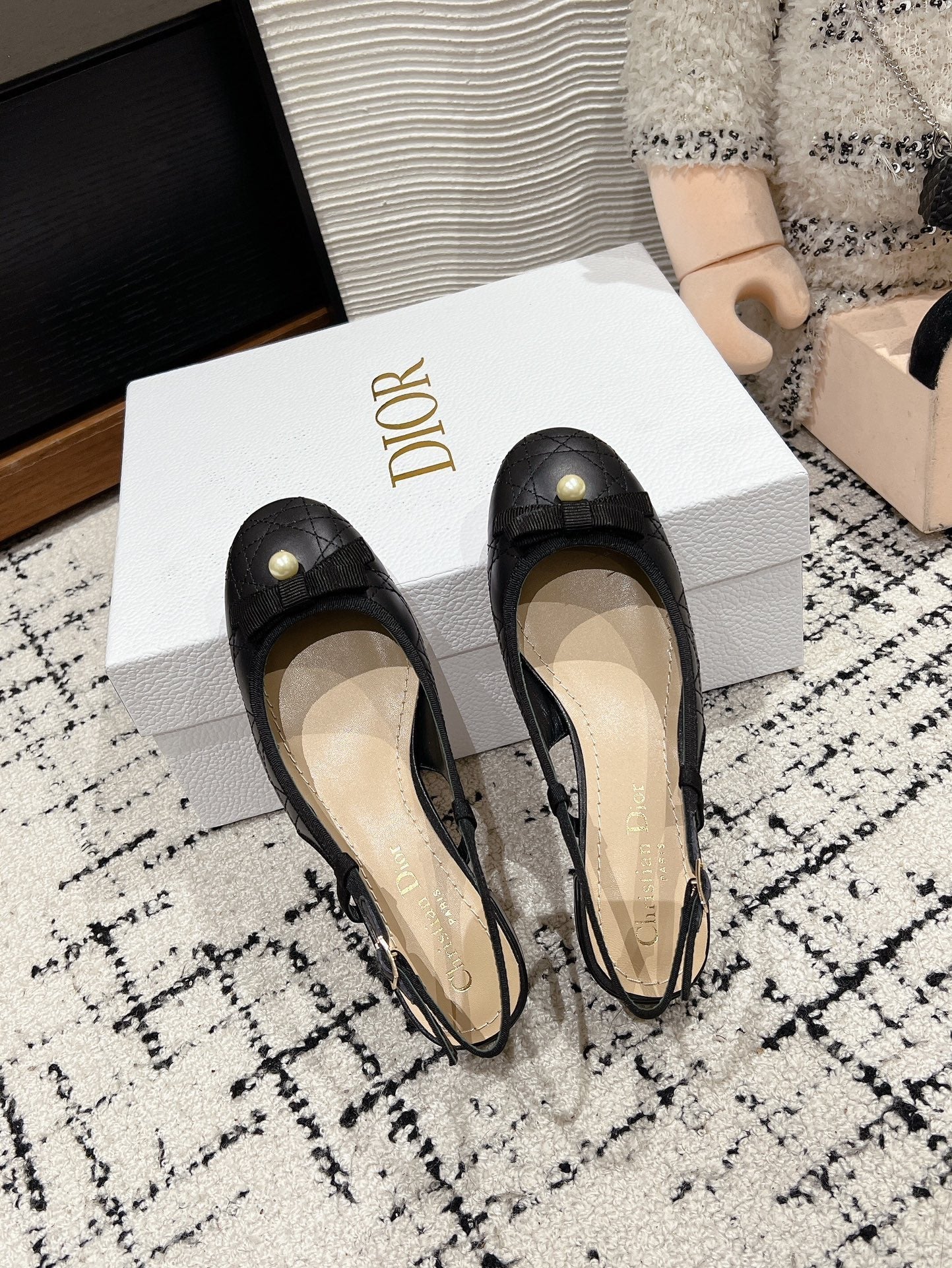 CD Ballet Slingback Pump 30mm In Black Quilted Calfskin 997043