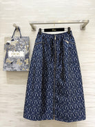 CD 2025 Letter Long Skirt Blue Jacquard Canvas