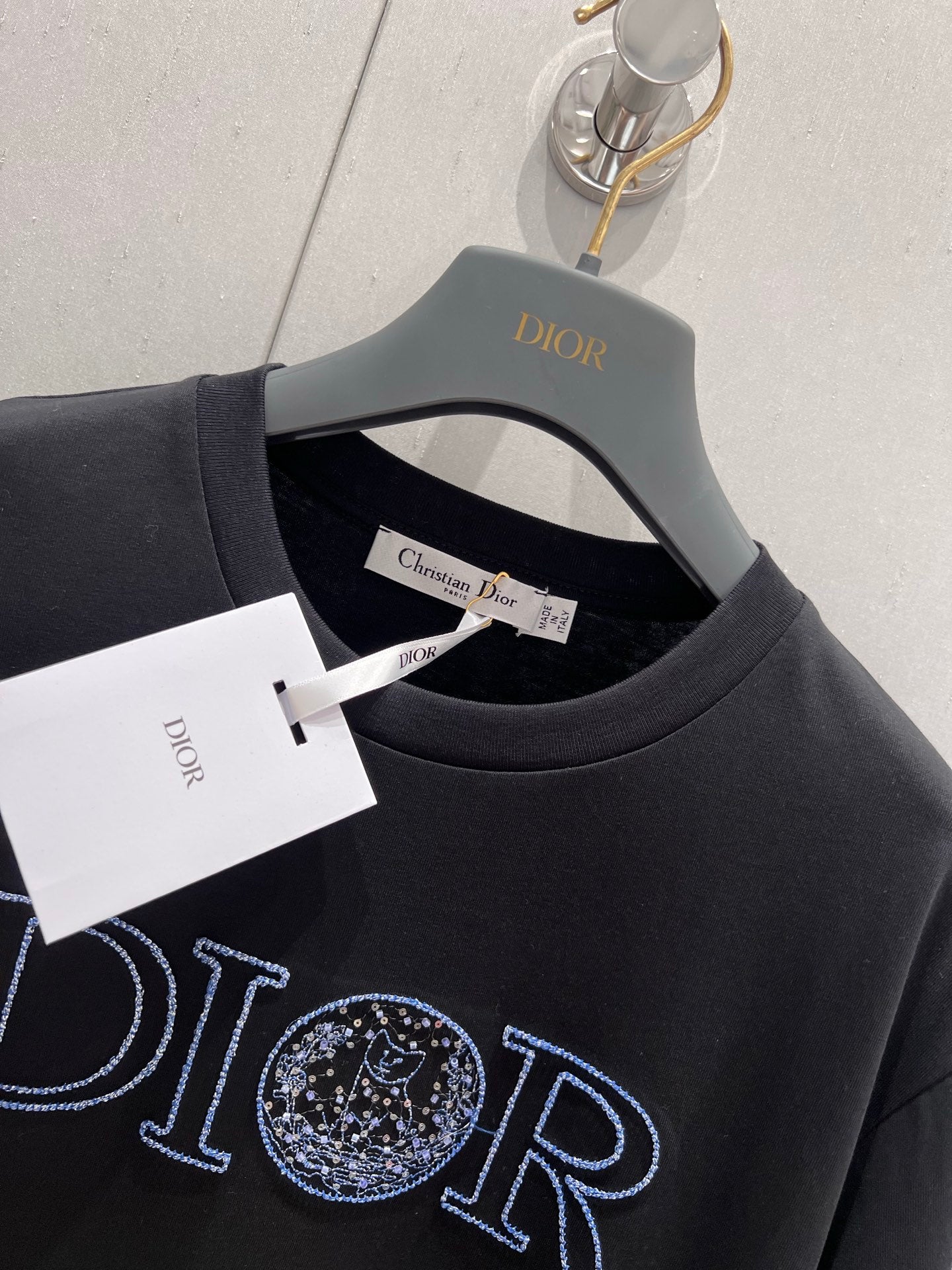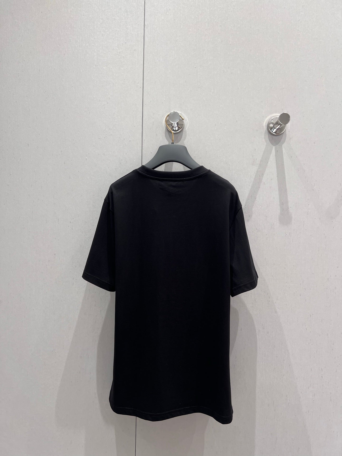 CD 25 Embroidered Grass Cat Short Sleeve Black cotton 217452