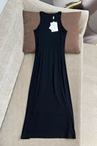 CD 25 Embroidered Threaded Vest Dress Black White Cotton