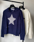 - Color: White, Navy Blue