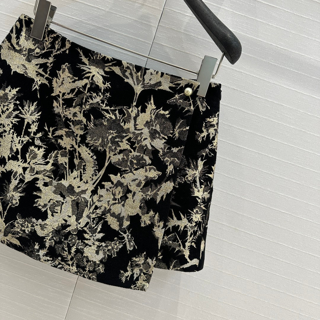 CD 25 Print Short Black Gold Jacquard fabric