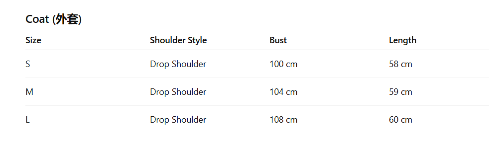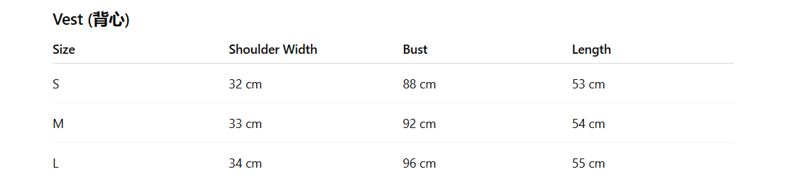 - Size : S,M,L