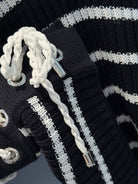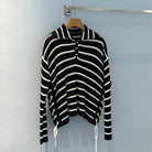 CD 25 Striped Knitted Long-sleeved Top Black Cotton