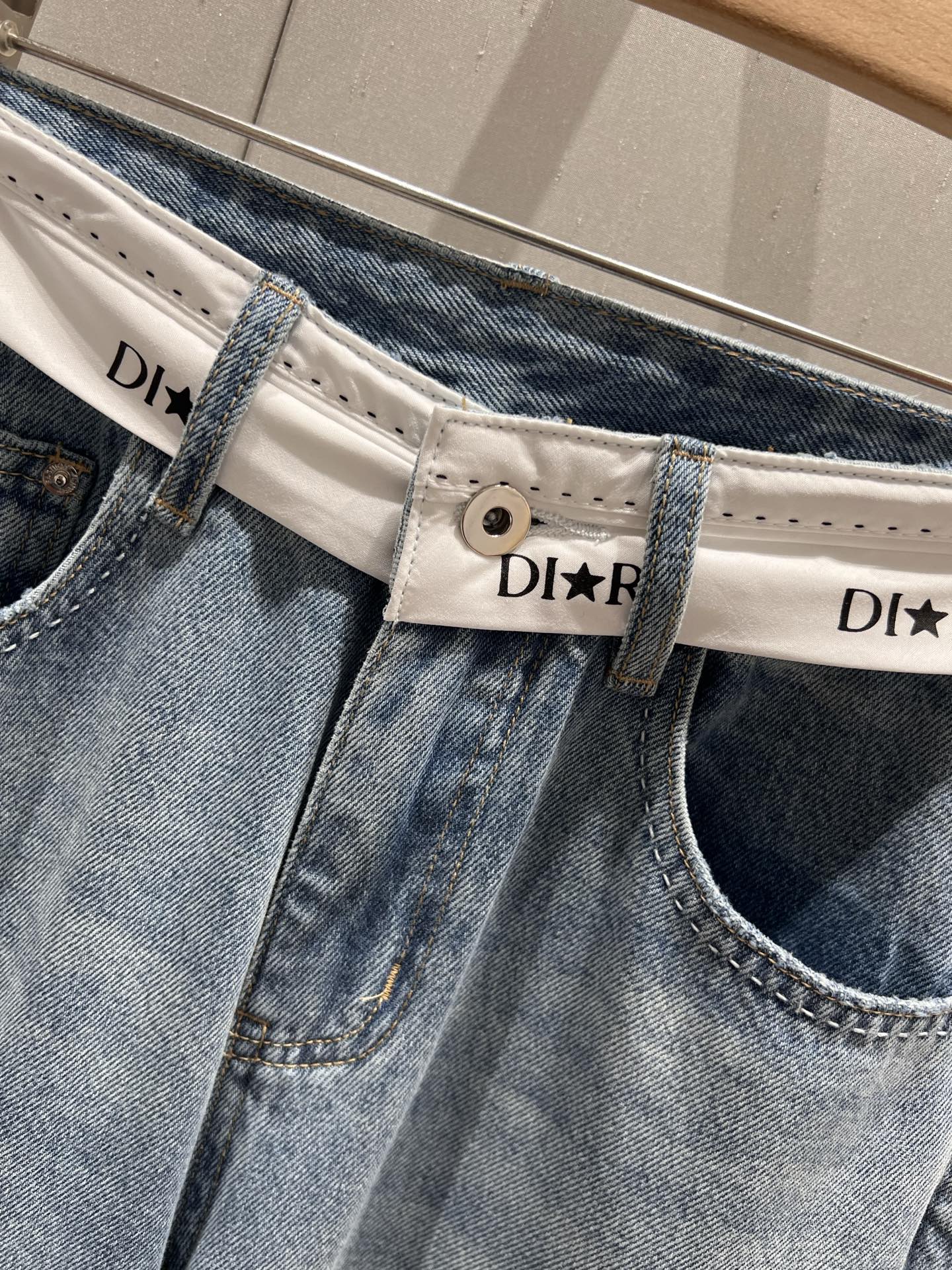 CD 25 Waistband Denim Pants Blue Cotton Polyester 217804