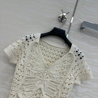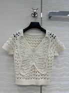CD Butterfly Hollow Top White Cotton Washi