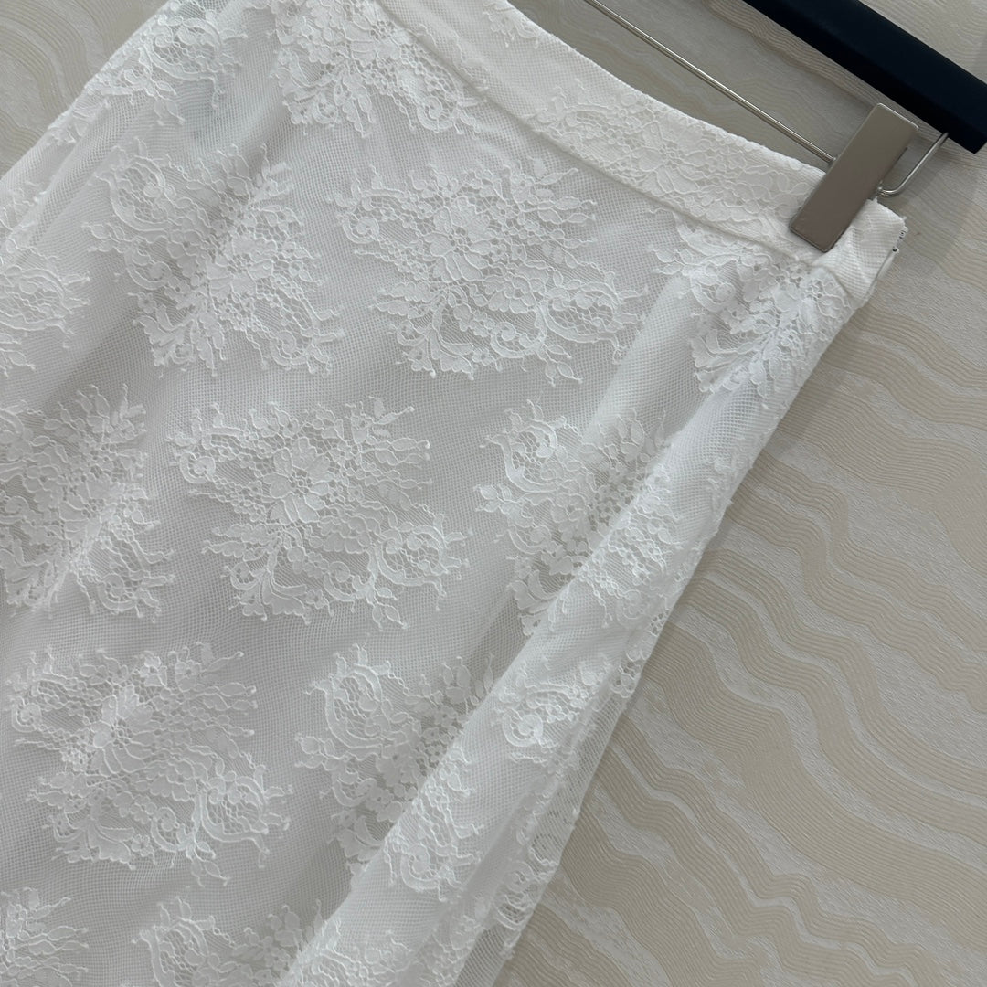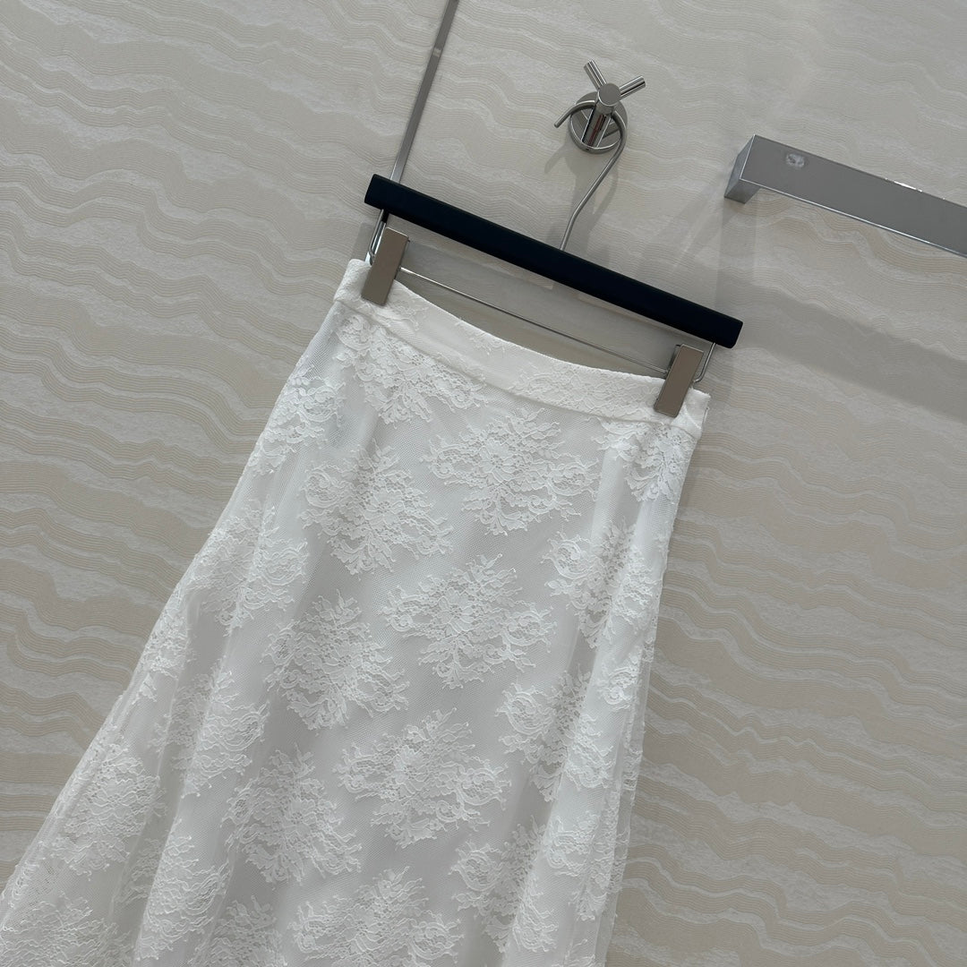 CD Lace Long Skirt White Polyester