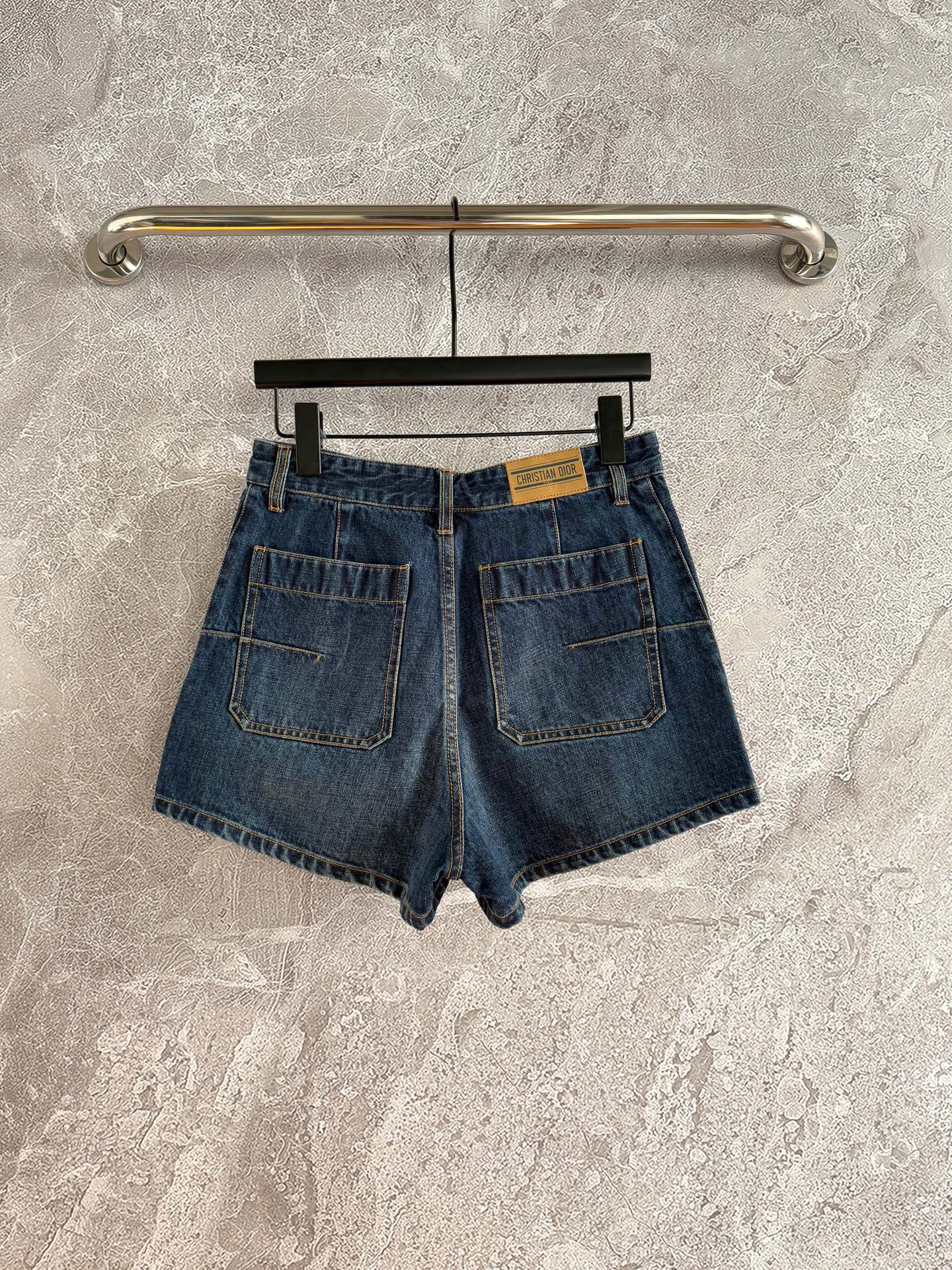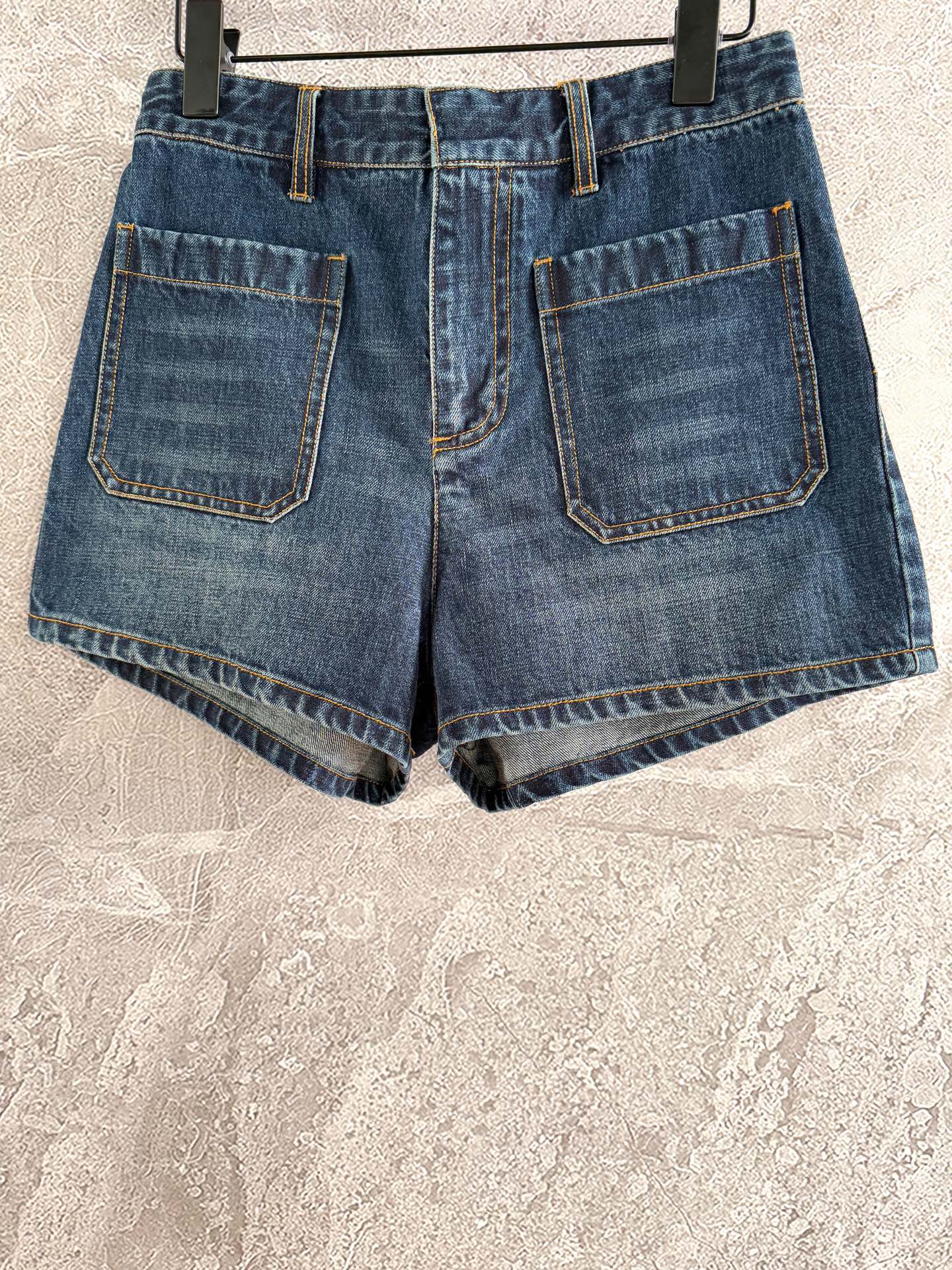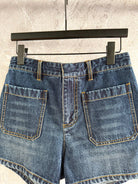 CD Patch Pocket Denim Shorts Blue Cotton
