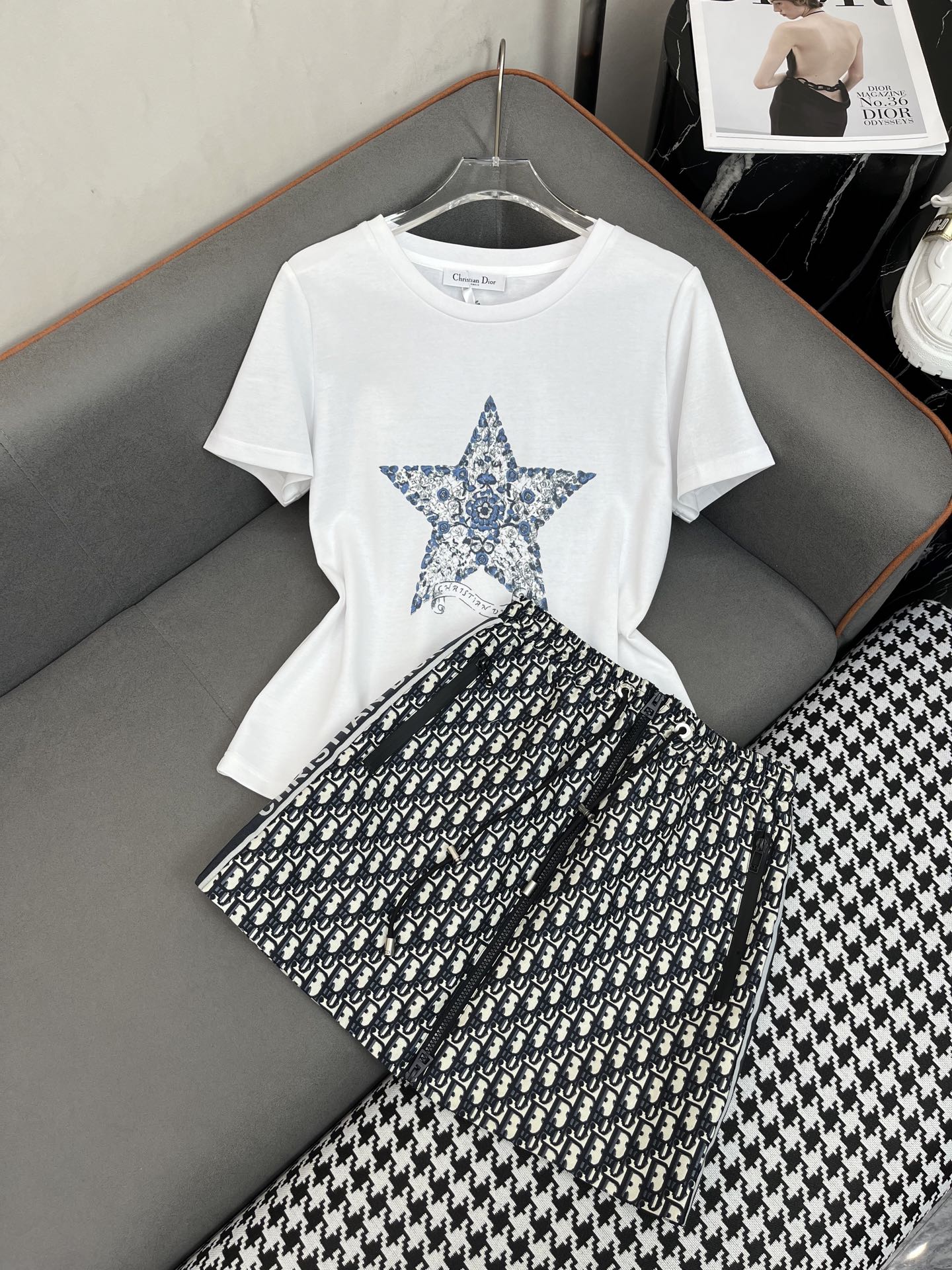 Dior 25C Embroidered T-shirt mix Skirt Dior Monagram 228675