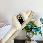 CD Dway Slide Black White Wool Fleece Lining And Canvas Fabric