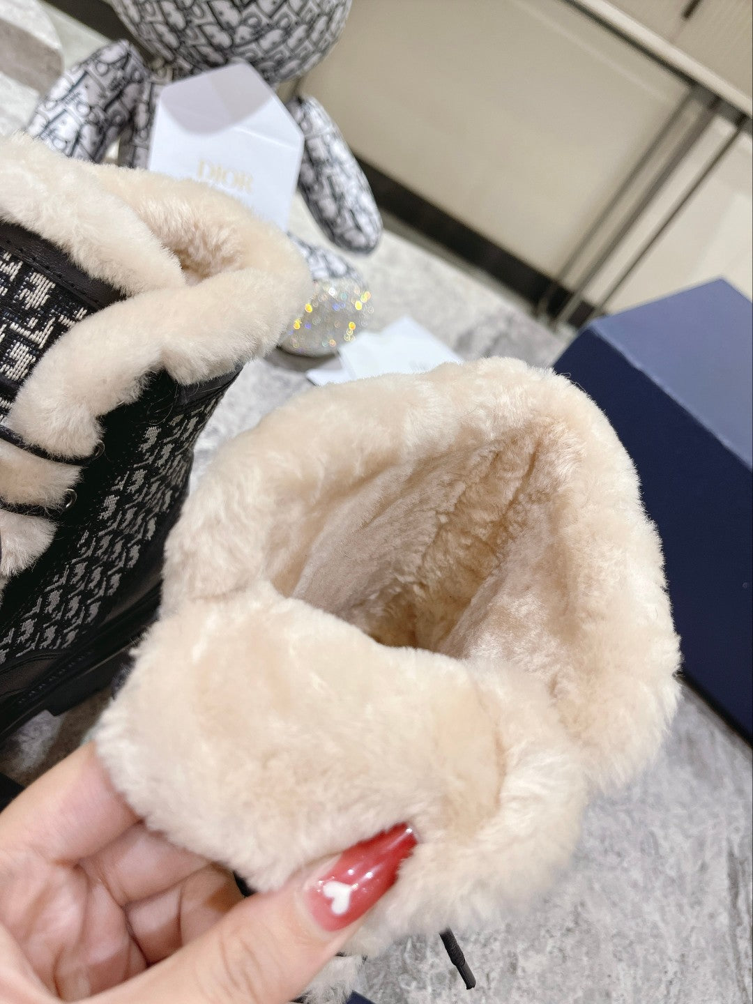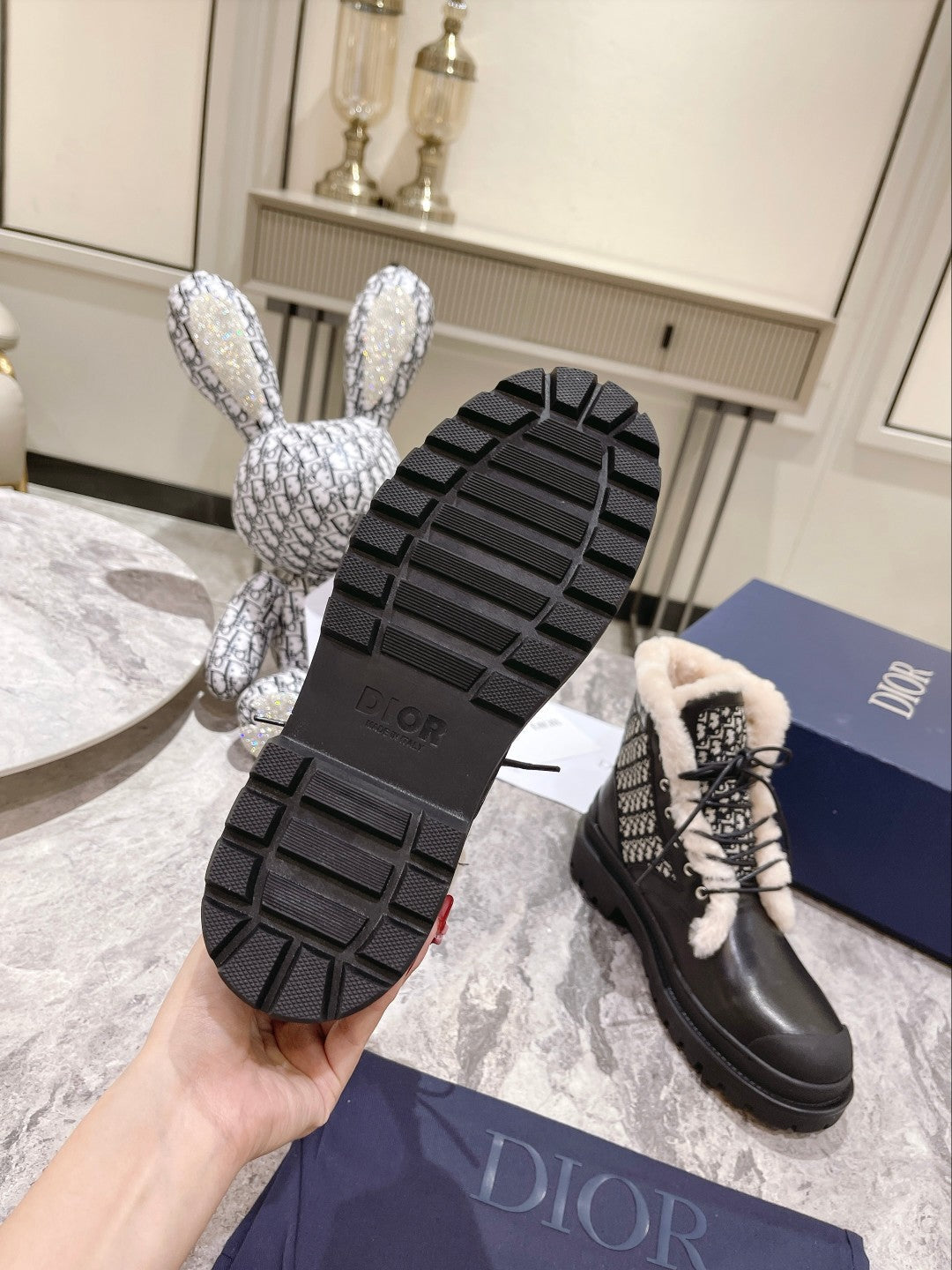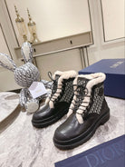 CD Explorer Ankle Boot 50mm Black White Fleece Lining Oblique Jacquard Fabric And Cowhide