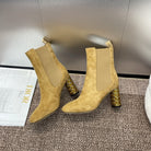 CD Icon Heeled Ankle Boot Beige Light Yellow Suede