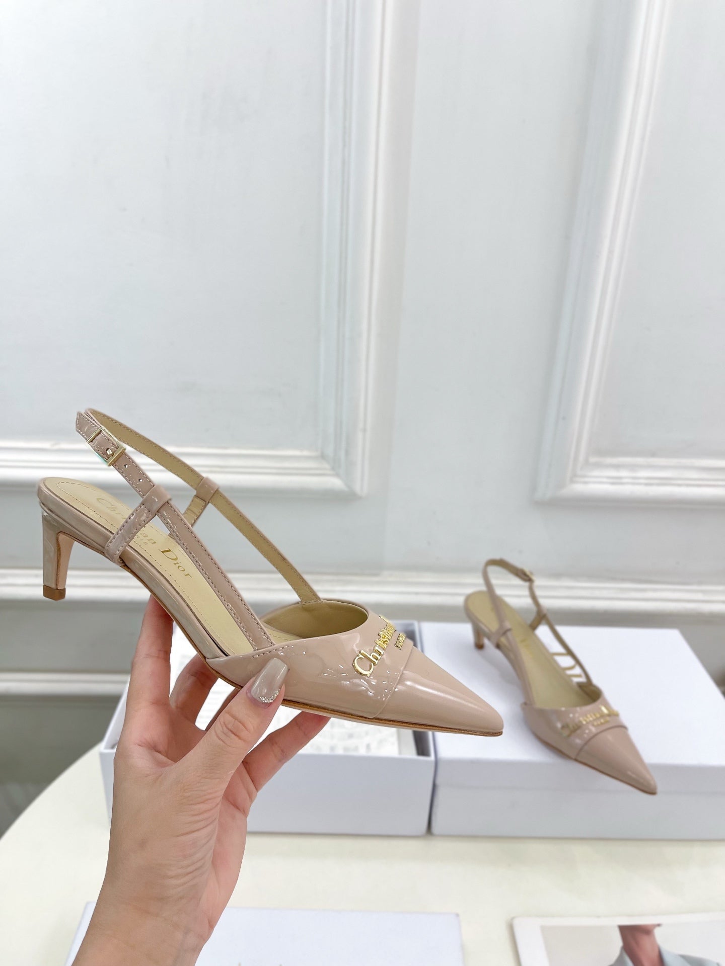 CD 25 Slingback Heel Pink Nude Patent Leather 307435