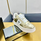 CD Star Platform Sneaker In Gold Mix White Calfskin 111092