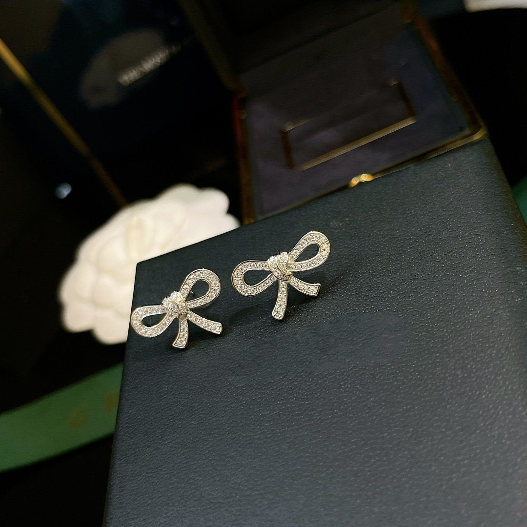 TILDA BOW MINI SILVER DIAMOND STUD EARRINGS
