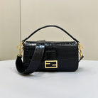 BAGUETTE 27 IN BLACK CROCODILE PATTERN GLOSSY CALFSKIN GOLD HARDWARE