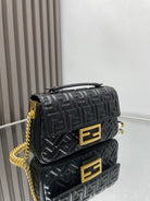 Fend Baguette 24 Bag With FF Motif Black Leather Ghw