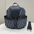 FENDI STRIKE 41 MEDIUM FF MIDNIGHT BLUE JACQUARD FABRIC BACKPACK