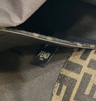 FENDI TOTE 41 BAG IN BROWN MIX BLACK MONOGRAM CANVAS GOLD HARDWARE