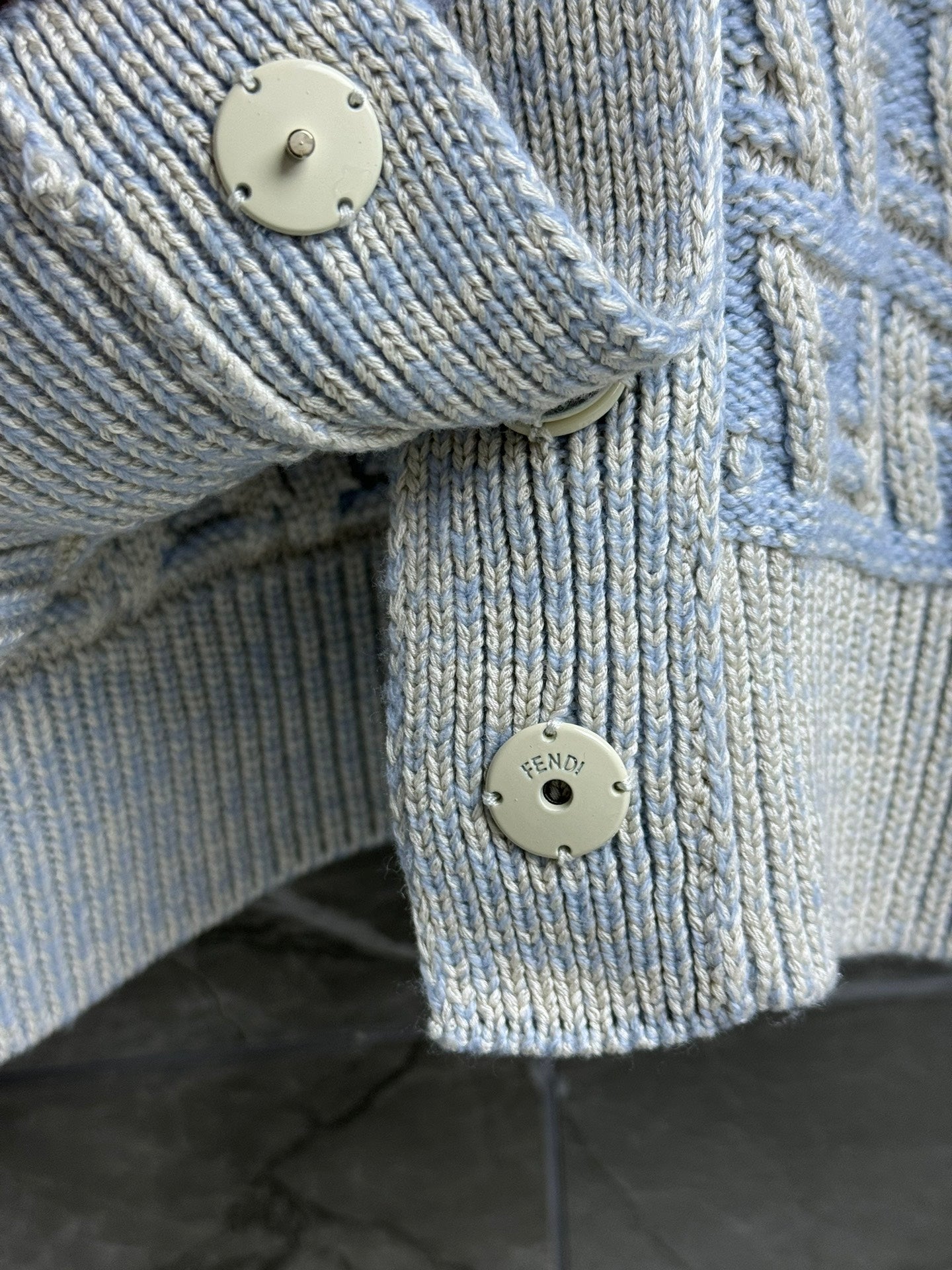 Fendi 2025 V-neck Cardigan Ligth Blue Wool