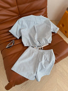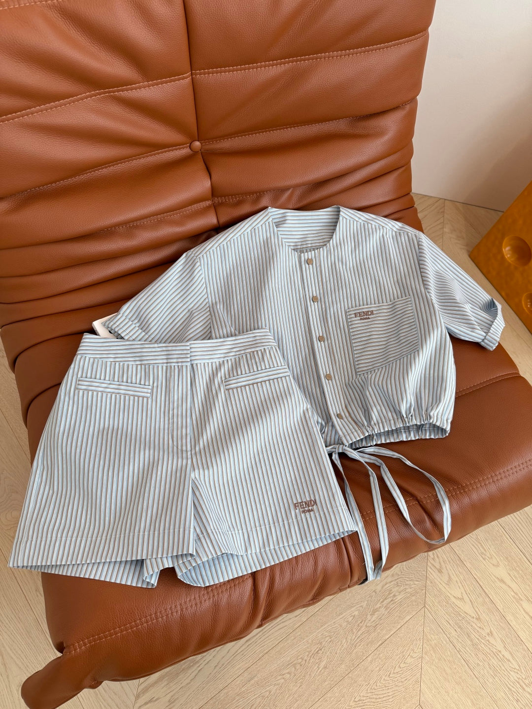 Fendi 25 Letter Logo Embroidered Striped Suit Blue Cotton