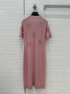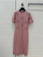 Fendi Beaded Flower Knitted Dress Pink Wool