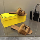 FENDI BAGUETTE MINK SLIDE SLIPPER IN SEPIA BROWN FUR