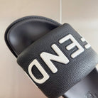 FENDI ROMA SLIDE IN BLACK GRAINED CALFSKIN WITH WHITE LOGO