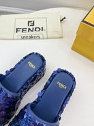 FENDI THICK SOLE 6 CM SEQUIN SLIPPER NAVY BLUE
