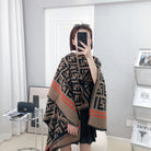 FF 140 CM PONCHO CHOCOLATE BROWN MIX BLACK WOOL AND SILK