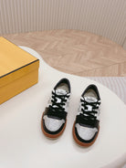 FENDI CASUAL SNEAKER IN BLACK MIX WHITE CALFSKIN ATTACH RHINSTONES