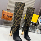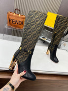 FENDI knee boots high heel monogram black cowhide 521216