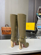 FENDI knee boots high heel olive green cowhide 521209